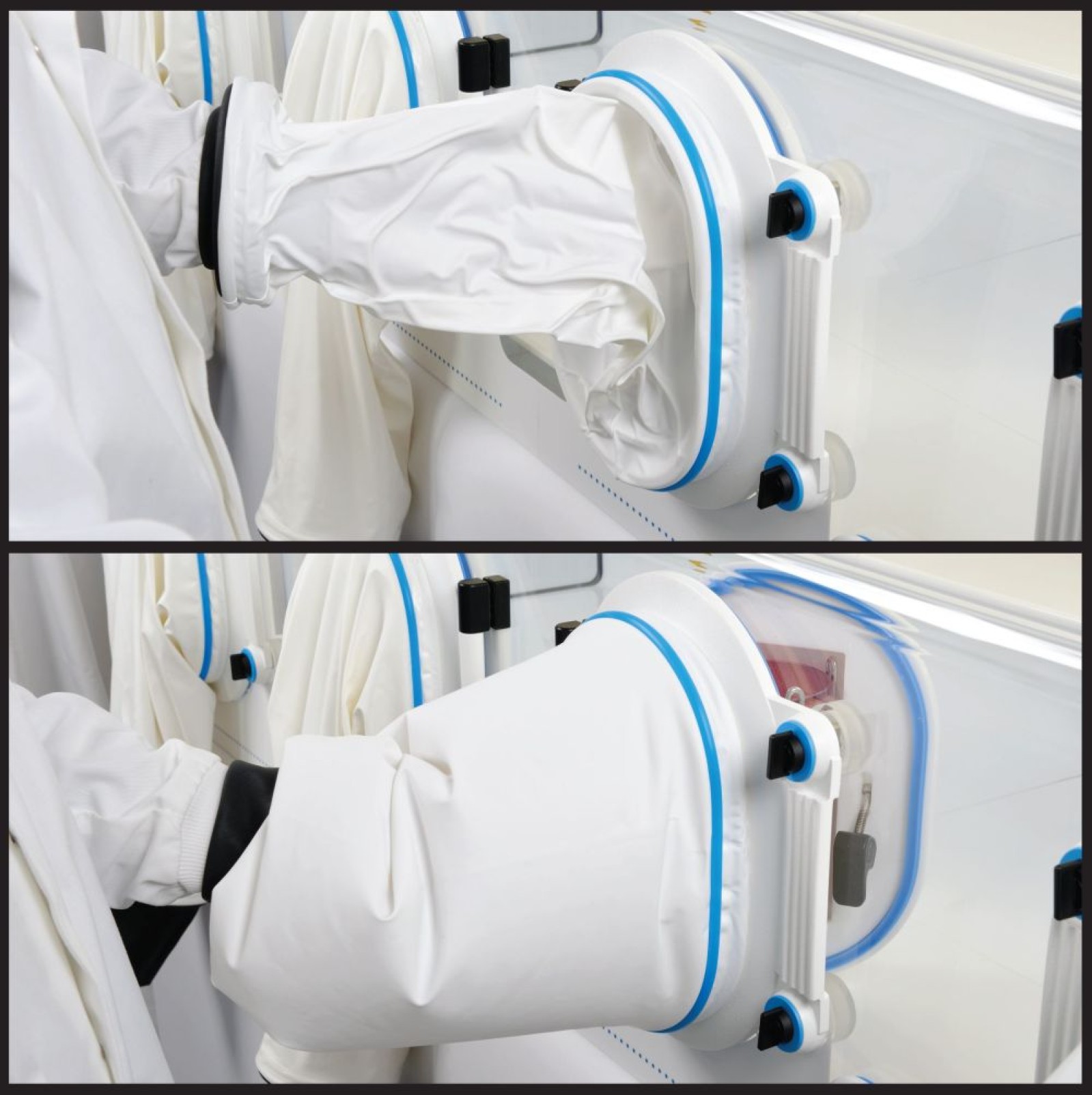 An Stelle der standardmäßig eingebauten ovalen Handeingänge, können Sie dieses vollautomatische Stulpenbegasungssystem optional einbauen lassen.